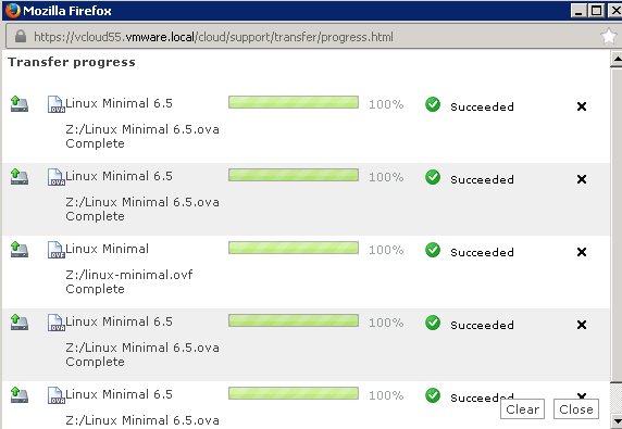 The OVA was uploaded to the vCloud cell, but when vCloud attempted to deploy it into vCenter it failed.