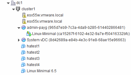 We can see that our Linux-Minimal vApp is in the admin-payg org vDC and that org vDC’s resource pool.