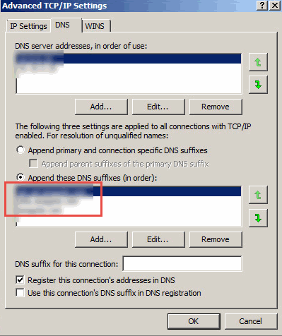 Here are the DNS suffixes that I’m referring to under the NIC’s properties