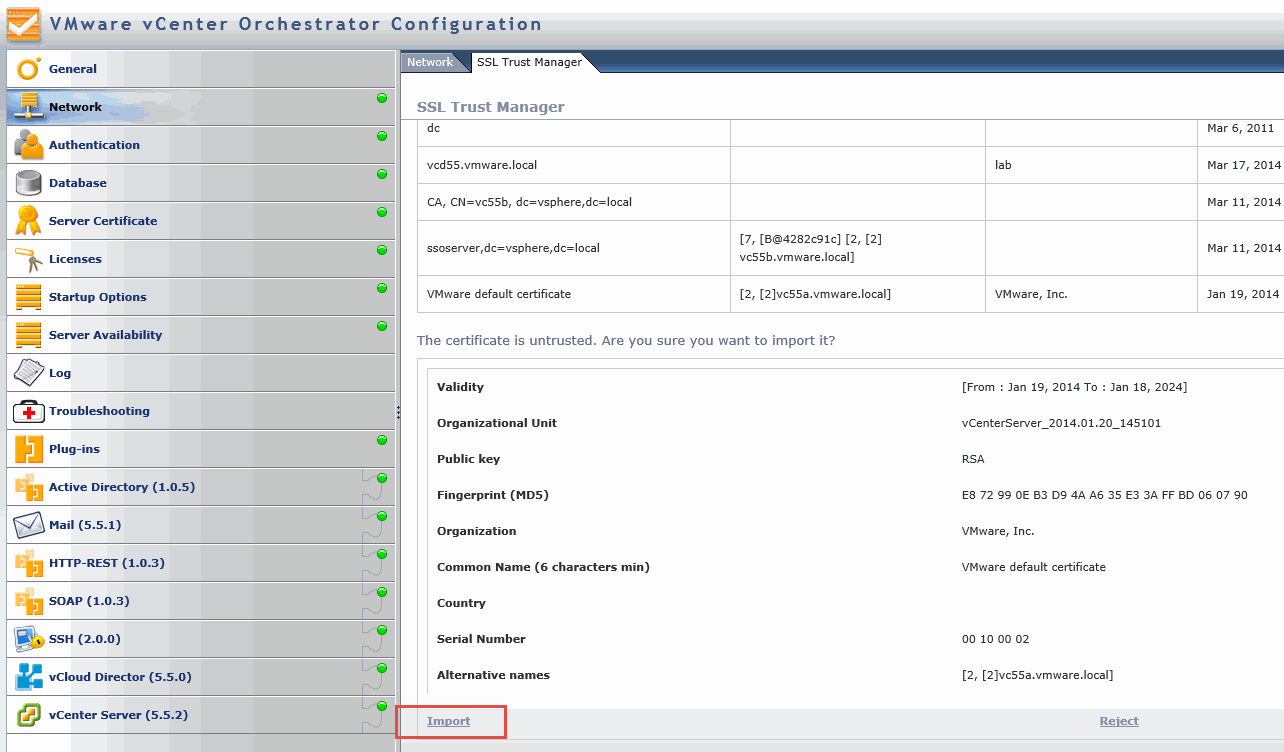- Enter the address of your vCenter server and press Import