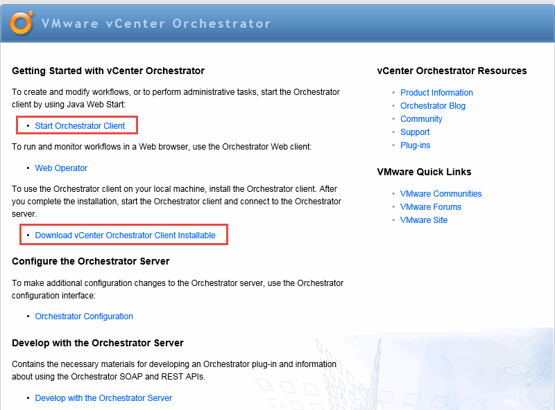 Using a web browser, go back to your vCO server. you can either run the vCO client directly or install it. The default credentials should be vcoadmin / vcoadmin.