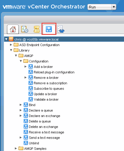 If we switch over to the Workflows tab, we can see the new AMQP workflows that were installed when we installed the RabbitMQ plug-in: