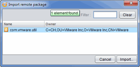 - Select the “Import package” icon.