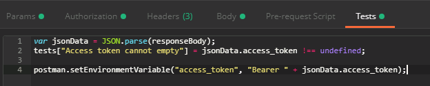Here we can see that we are parsing the our request’s response and setting the access_token environment variable to the access_token value from the JSON.